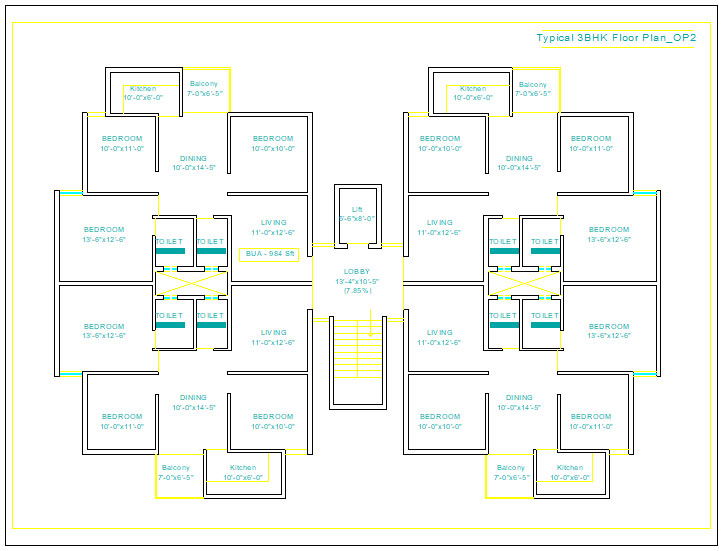 3 Bhk Appartment Plan cad and jpeg file which is a appartment containing 3 bhk flats for family proposal