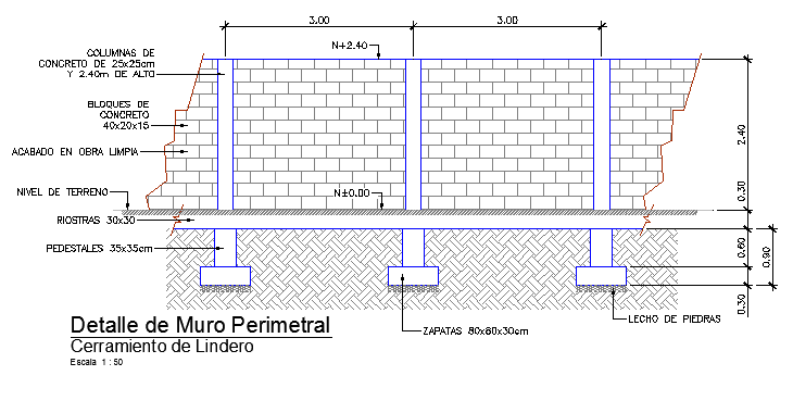 Here the detailed drawing of perimeter wall showing sectional elevation with material description, foundation detail, dimensions, etc., in autocad drawing.