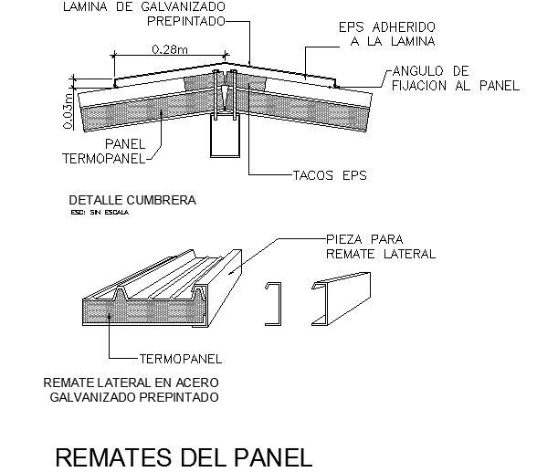 Here the detailed drawing of ridger roof construction with thermal panel showing section and detailed view of important section with dimensions, material description, working details, etc., in autocad drawing.