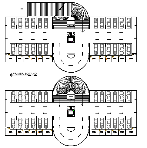 Car Parking Detailed Elevation of High Rise Building dwg file