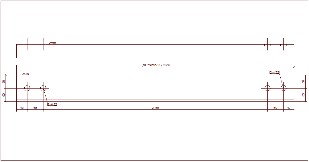 and elevation view of Chanel and its length and hole view with necessary dimension