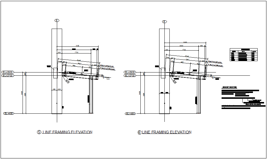 Line framing elevation view with beam and column view dwg file