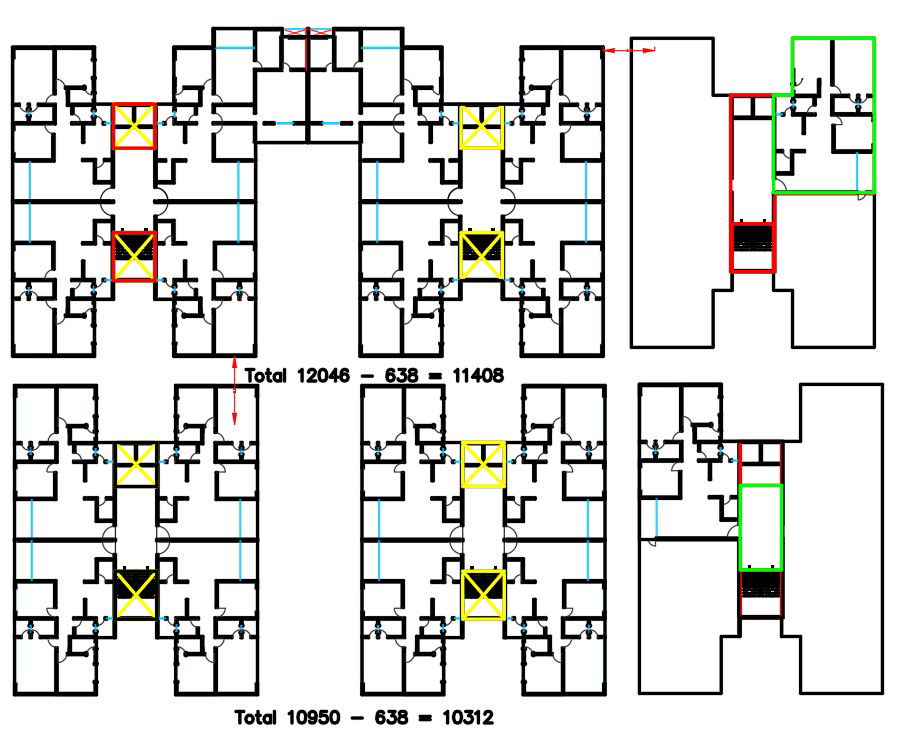 Apartment layout plan dwg file. find here site layout plan drawing with detailing of 2 bedrooms and 3 bedrooms, hall kitchen apartment project.