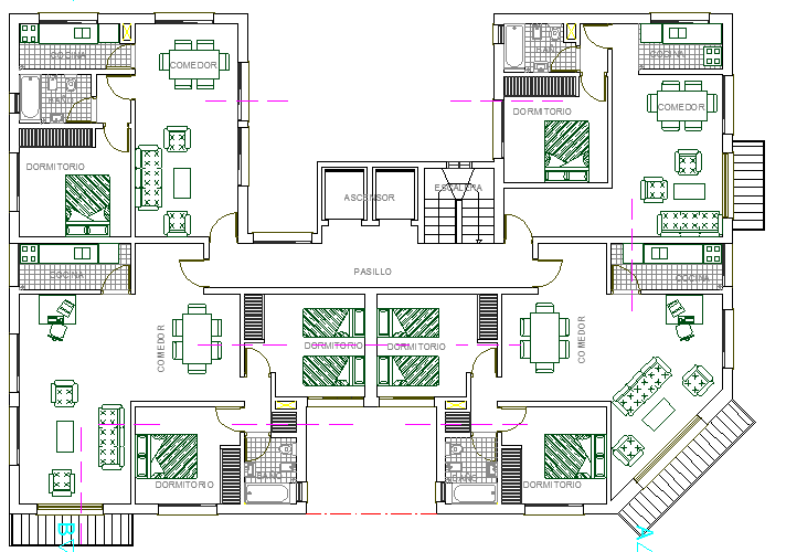 Multi Family 20 Units 2 story Residential Housing Flats Structure Details dwg file.