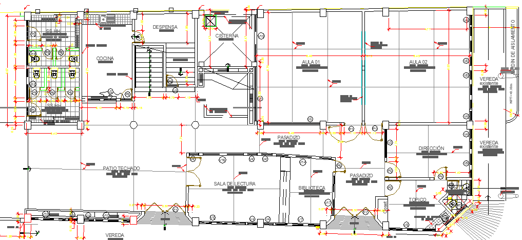 Primary School Design and Structure Details that includes detailed view of entry gate, lobby, staff room, library, class room, foot ball net, principal room, kitchen, dispensary, hall, laboratory, canteen, garden and much more of school design.