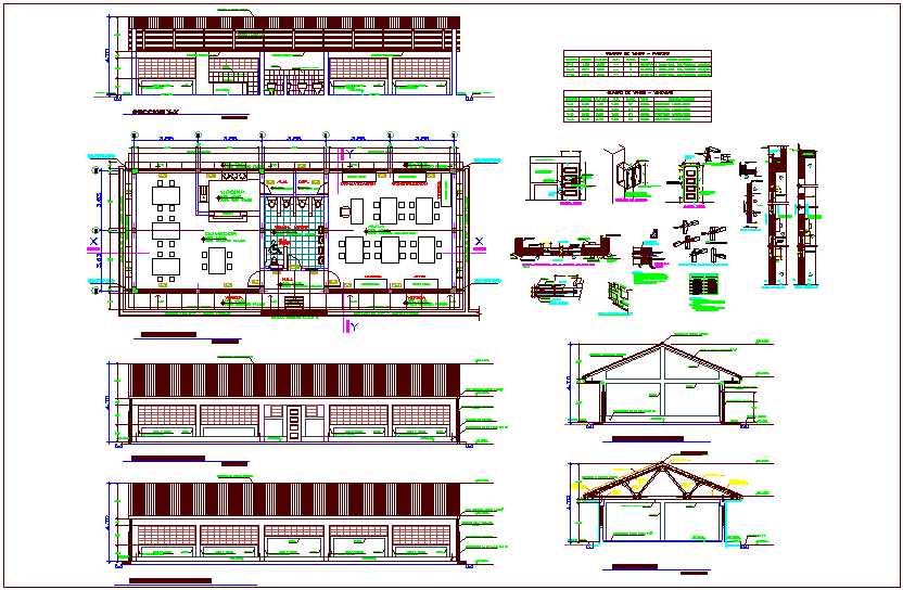 Distribution view of area with section and door and window view with detail and schedule dwg file