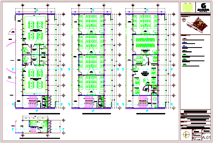 Class room view with laboratory plan in three level view dwg file with view of plan of