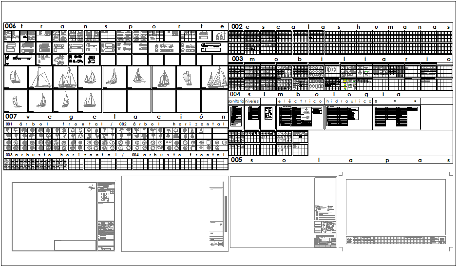 tree view, bedroom,dining area and drawing sheet block view with different symbol.