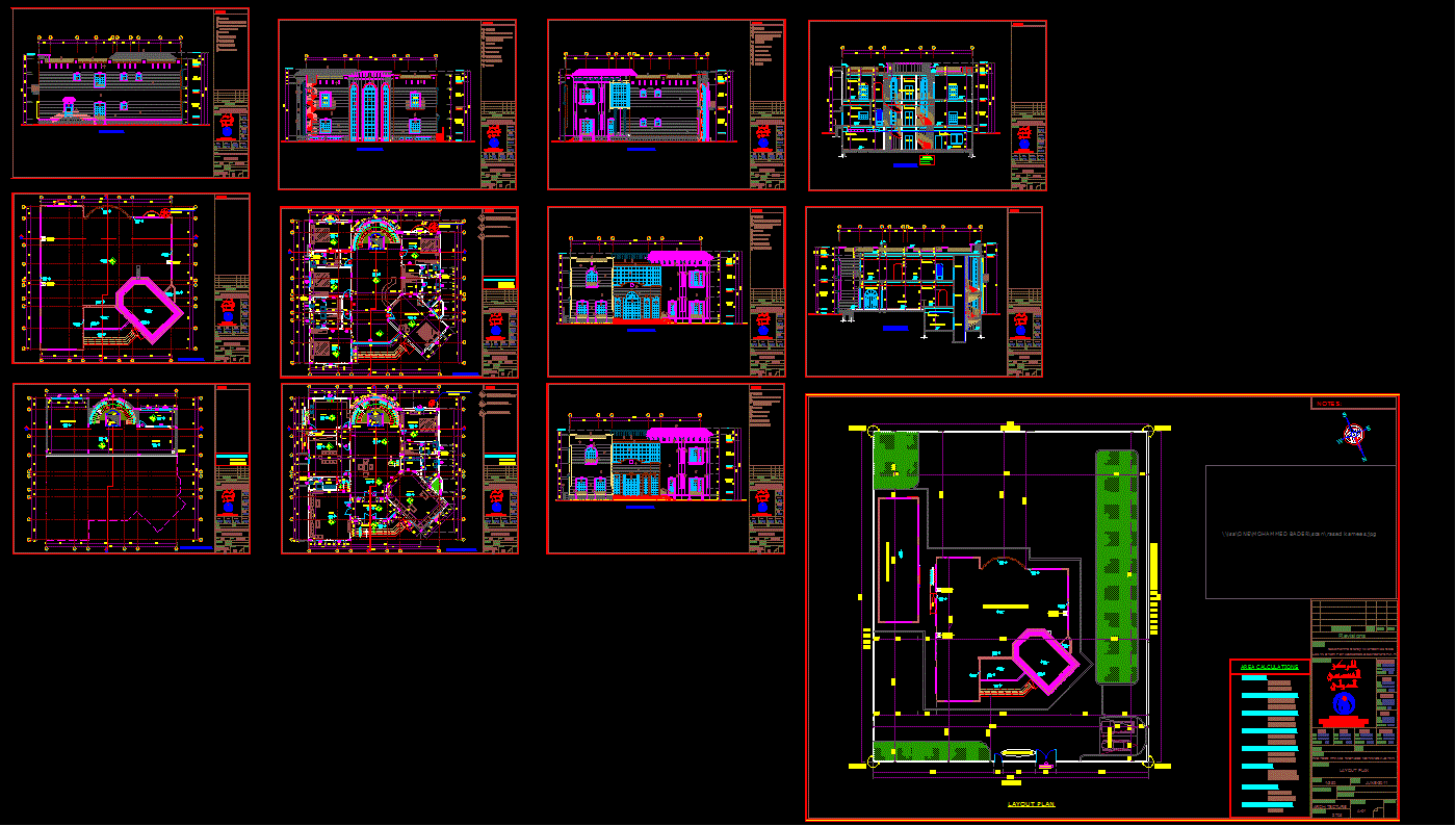 Villa Section Elevation and Floor Layout Design AutoCAD DWG File