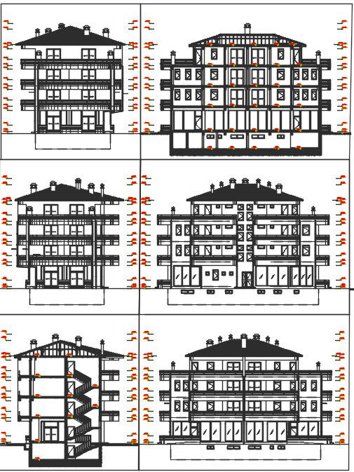 Here the autocad drawing file of apartment.with elevation view , front view , left and right side view ,cut view , door and window and staircase also shown in this cad file.