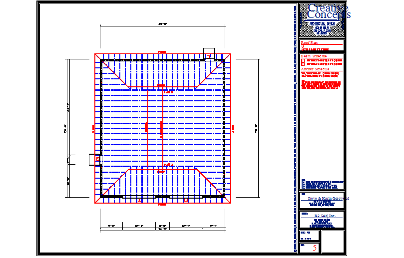 6/12 pitch, 47 lb. load, 12" & 24" overhang, 8"x16" concrete tie-beam w/ (2) #5 top & (2) #5 bottom, 20'-0" aluminum ridge vent, common trusses, 24" overhang, h-1, 11'0" s.b. etc detail this file.