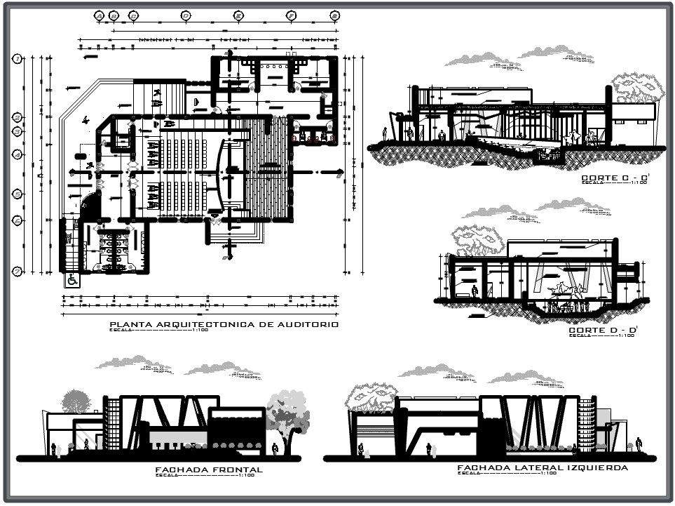 Find here the architecture layout plan, section plan, construction plan, section plan and elevation design of Conference Hall Project autocad file.
