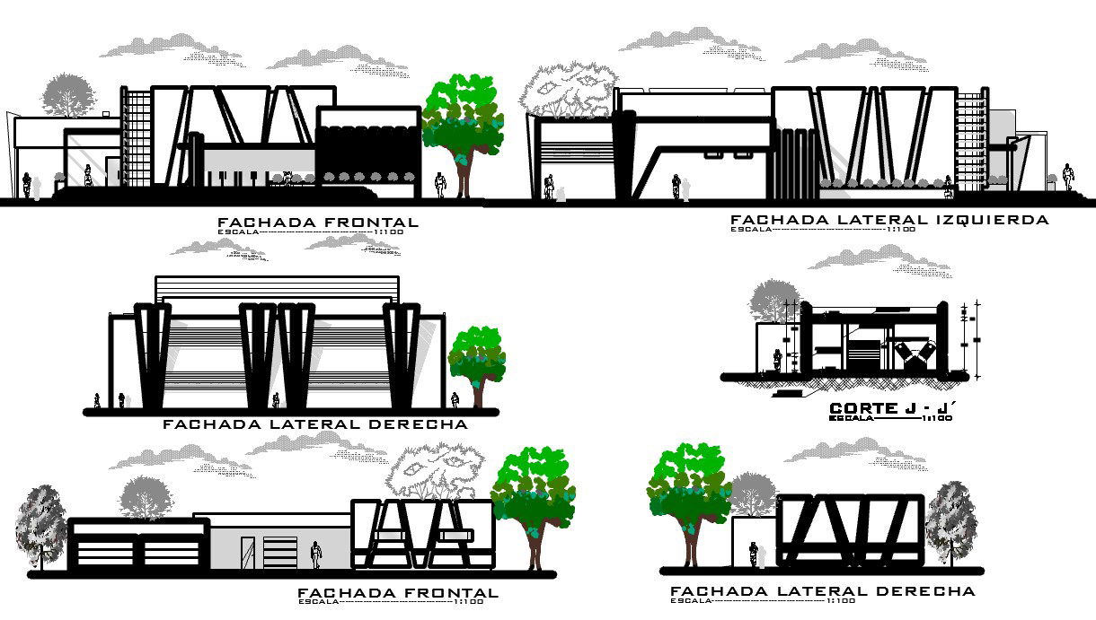 Modern Elevation design of Building dwg file. The modern architecture elevation design with structure plan, section plan and elevation design of corporate building.