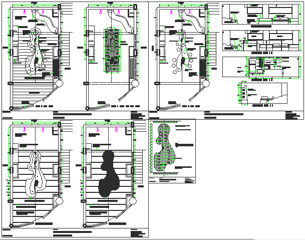 Here the autocad drawing of a beauty clinic project showing plans, sections, elevation along with dimensions, circulation details, furntiure layout, area specification, etc.