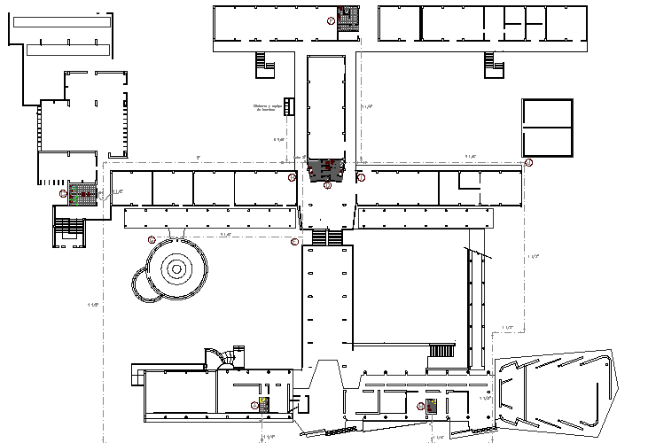 Faculty Area or Staff Room of University Design and Elevation with a detailed view of entry gate with lobby, wall construction, staircase, doors and windows, gate details, construction details and much more of faculty room design.