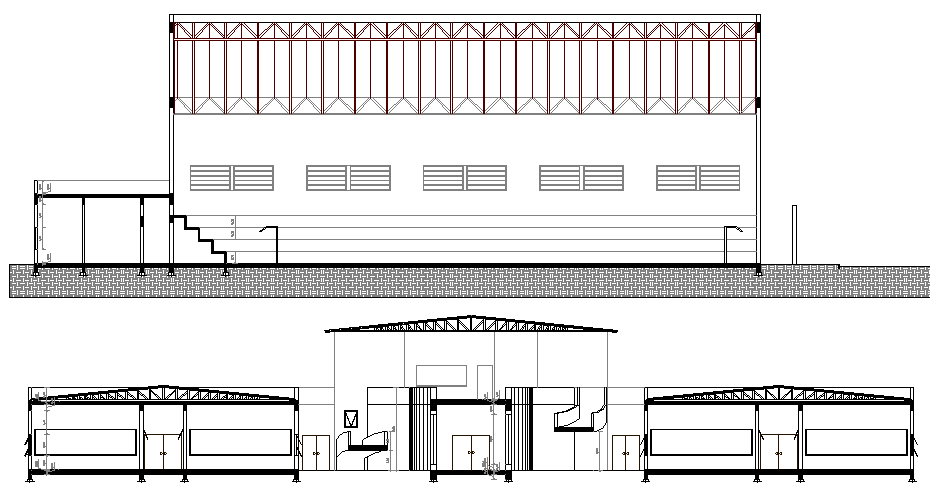 Private Multi Flooring School Design and Elevation with a detailed view of staircase construction, cuts, column and beam, back side elevation, door and windows, roof plan and design, wall construction, outdoor light and much more of school design.