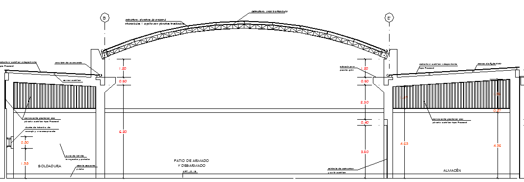 Warehouse Architecture Design and Elevation that includes wall construction, roof construction, terrace view, column and beam details, storage, indoor and outdoor layout, measurement details and much more of warehouse design.
