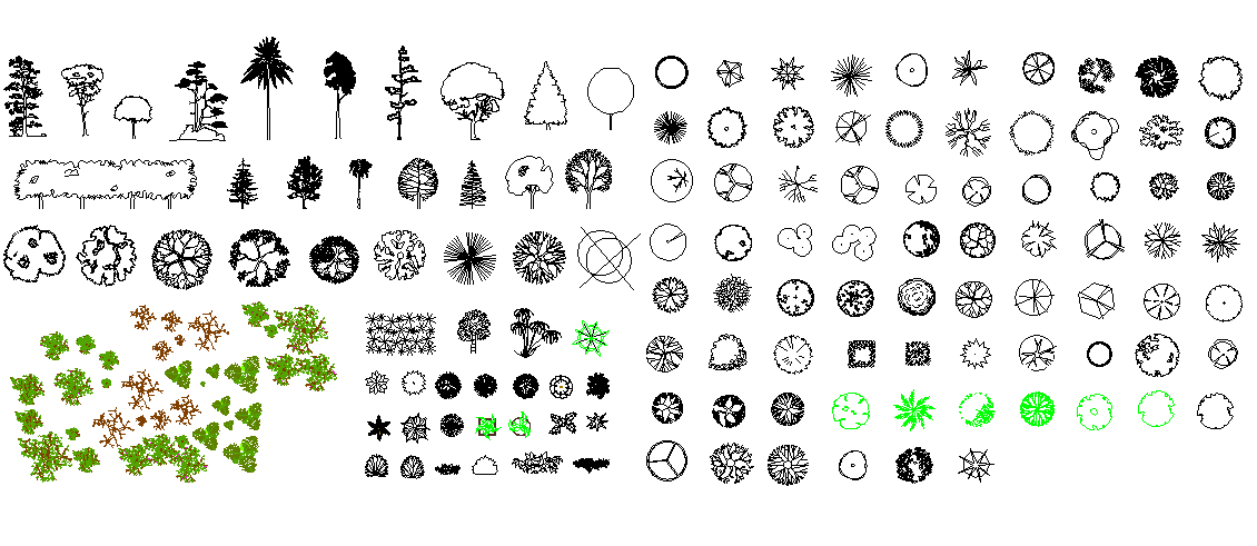 Tree Blocks autocad file. different elevation design and top view of tree blocks in autocad format.