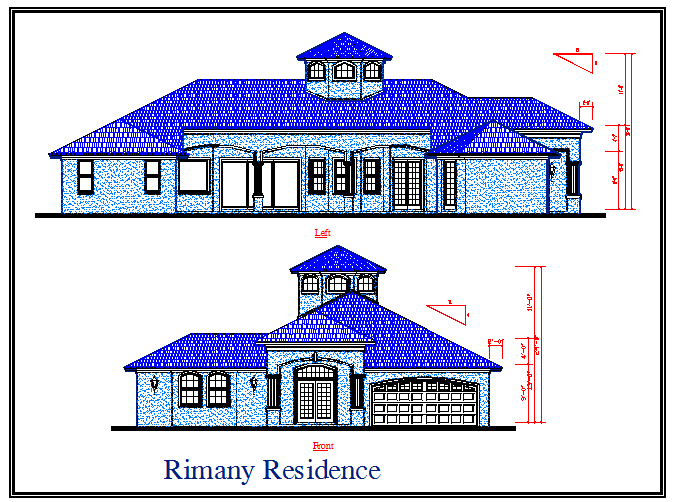 Front & Left Side Elevation show in the Drawing . Proper mansion the door & windows Design. 2 floor level elevation design.all detail include the drawing,.