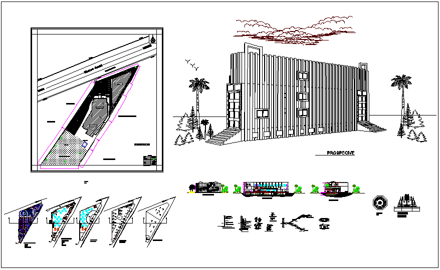 Master plan,elevation and sectional view with perspective view of education center dwg file