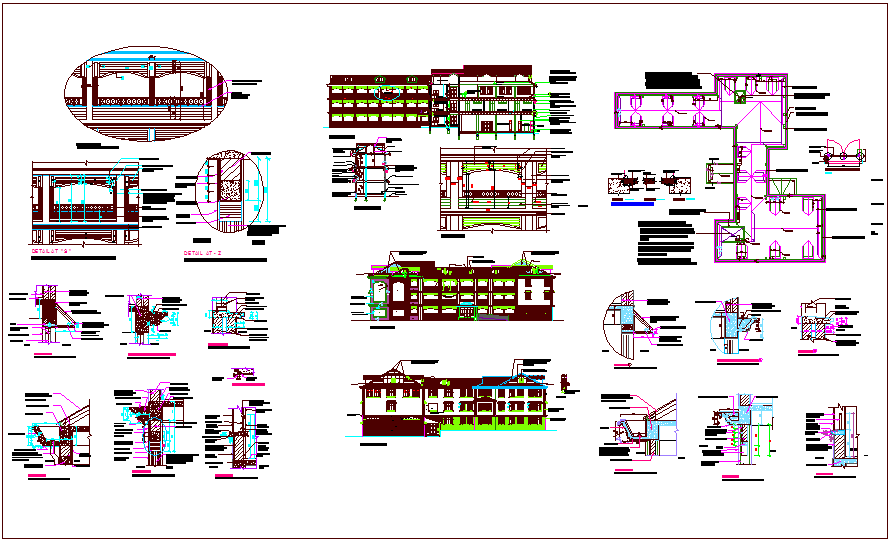 B.Ed collage plan and elevation view with structural design dwg file with plan view with