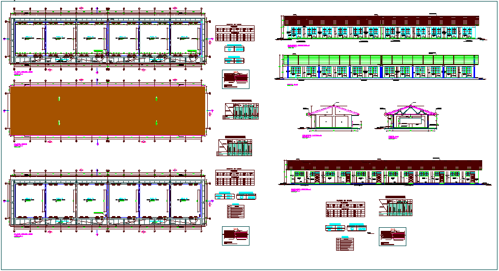 Primary school plan view with elevation and door and window detail dwg file with plan