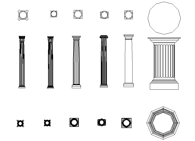 Column Capital blocks dwg file. find here the different type of column capital design with top view and side elevation design.