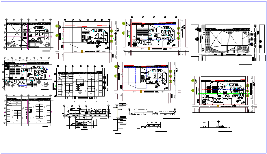 Construction view of school with plan and section view dwg file with plan view with
