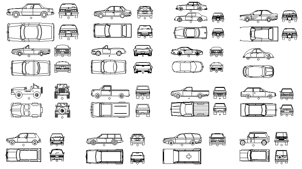 Vehicle Cad Blocks dwg file. Find here the top view, front view and side elevation design of Vehicle Cad Blocks.