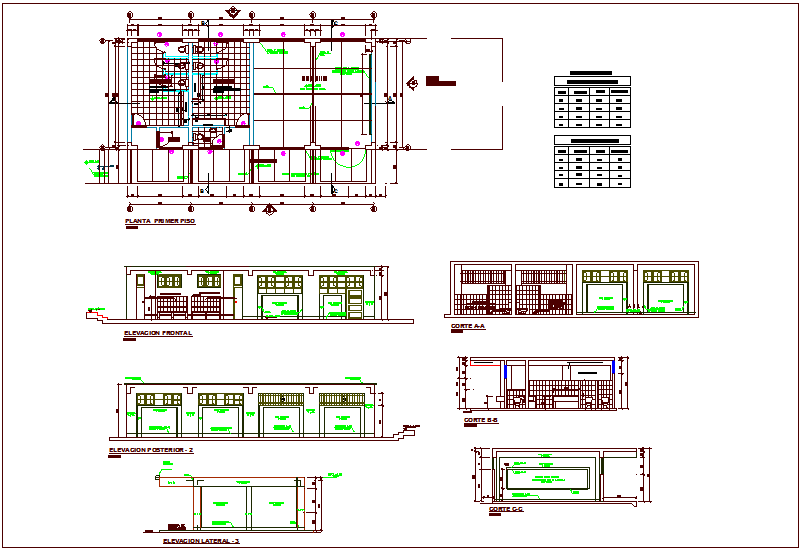 Class room plan for school with sectional and elevation view and door and view with schedule dwg file