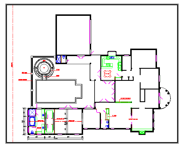 bungalows lay-out plan design. (2) 3'0"x6'8" pocket doors, 36" h. wall w/ 1x6 wood cap, cathedral ceiling, 16"x16" column,