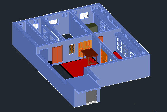 3D Design of Bungalow Elevation that includes top view of house, with indoor furniture, interior, doors and windows and much more of bungalow design.