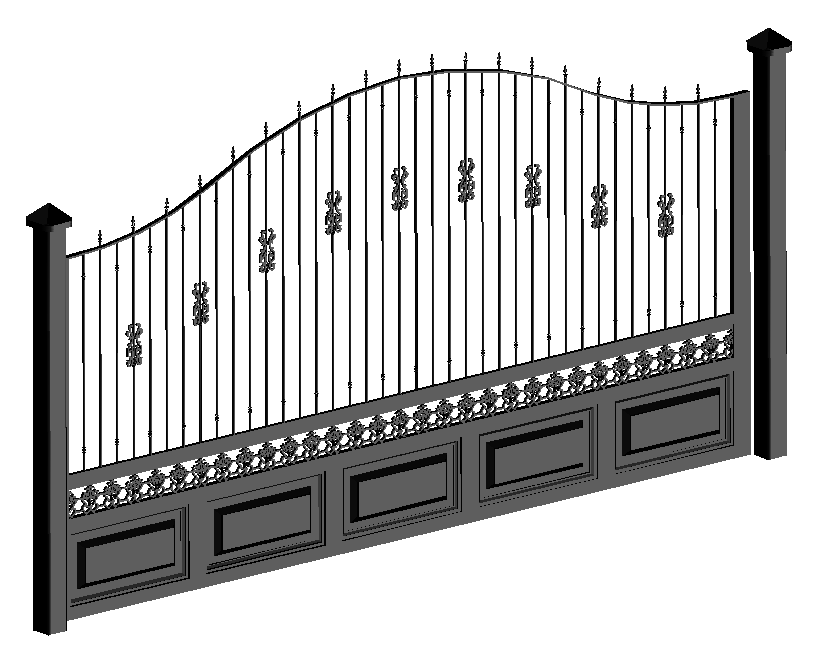 This 3D iron gate cad drawing illustrates a beautifully designed wrought iron gate created with intricate details and ornamental patterns. The design features elegant vertical bars, decorative floral motifs, and a solid lower frame, making it suitable for modern architectural entrances. The DWG file captures accurate proportions and realistic 3D renderings that help visualize how the gate will look once fabricated. It is ideal for architects, fabricators, and designers who need reference models for exterior design projects.