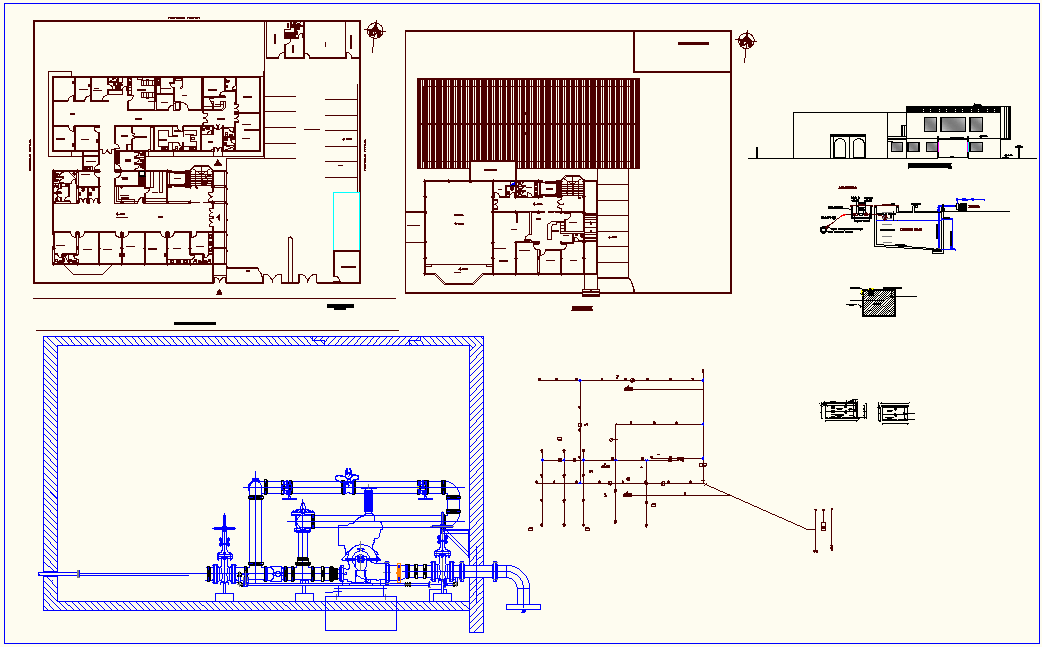 Water pipe line view with single line diagram and view of plan for health center dwg file