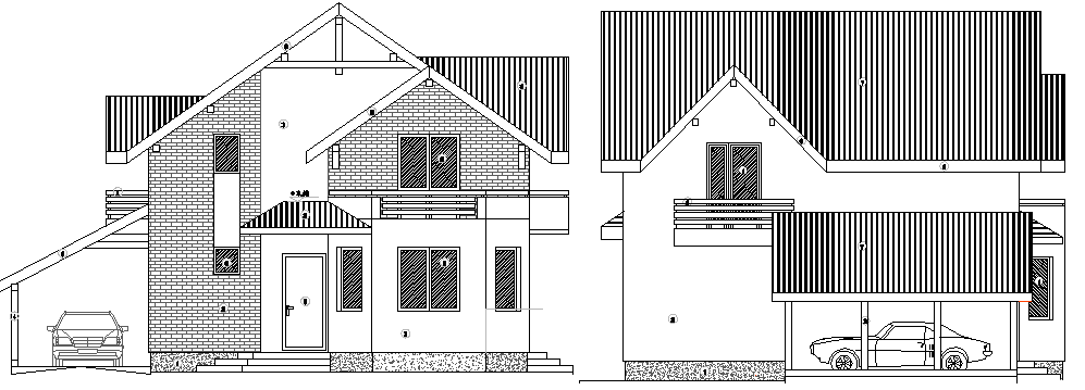 Single Family Bungalow Design and Elevation dwg file