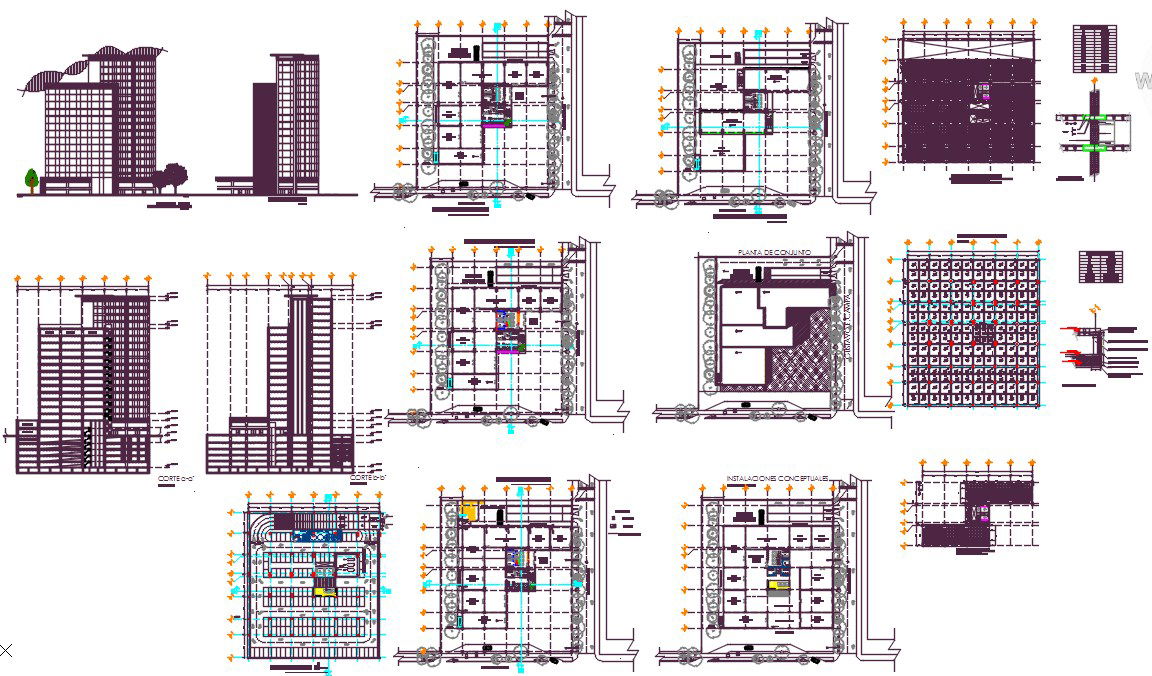 Here the autocad drawing file of building trade project.It is an architectural and structural plan and olso has view and cuts in a very detailed way.