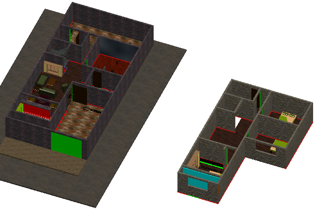 3D Design of Bungalow Elevation that includes a detailed view of top view with indoor furniture, doors and windows, staircase elevation, roof, foot and much more of bungalow design.