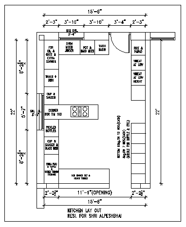 Kitchen layout plan design drawing of Bungalow design