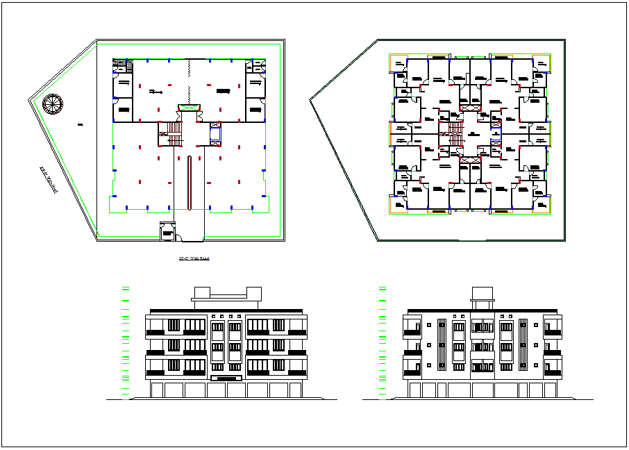 Apartment design view with plan and elevation view dwg file with plan view with main entry,hall,