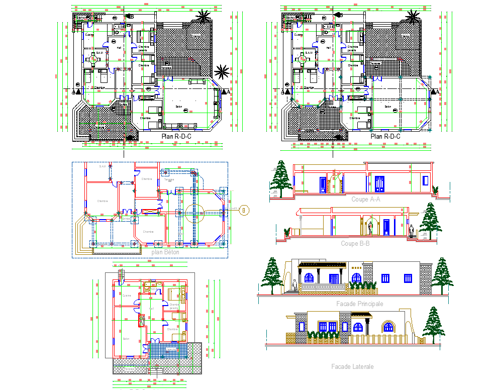 the architecture layout plan, structure plan, construction plan, foundation plan and elevation design of Single level House plan in autocad format.