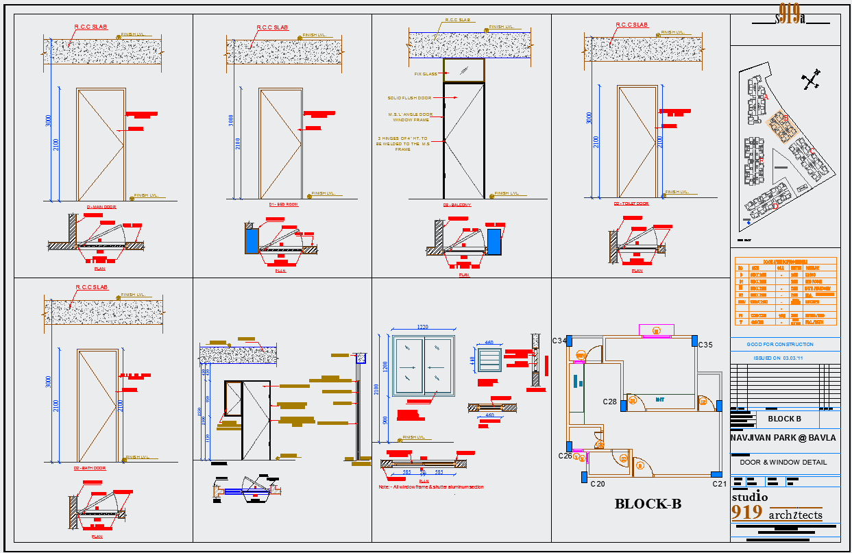 find here layout plan, section plan and elevation design of door and window installation plan in autocad format.
