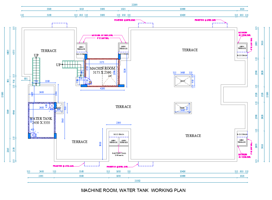 Layout plan of Building design autocad file. find here layout plan of the machine room and water tank of building working layout plan.