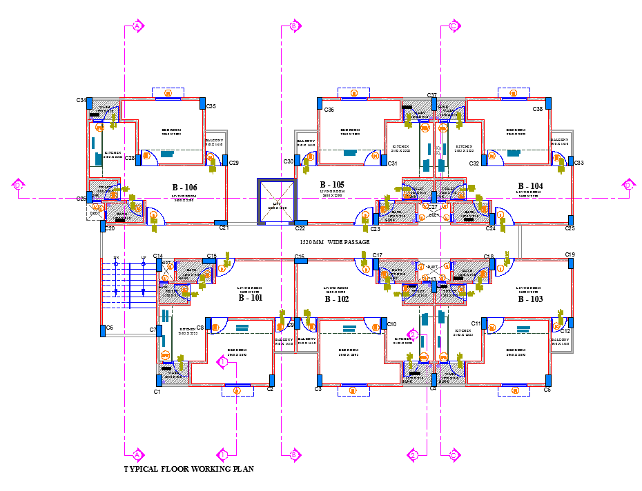 Typical Floor working plan detail dwg file. find here architecture layout plan of Typical Floor working plan in autocad format.