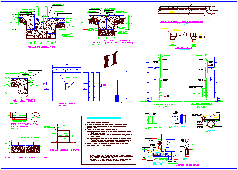 Construction view detail with foundation detail view of flag with view of lifting mechanism dwg file with flag view with construction view and foundation view with concrete and view of lifting mechanism with wheel view with necessary dimension view with construction design.