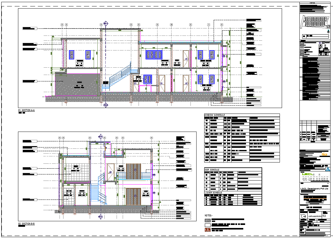 find here the architecture section plan, construction plan, elevation design and layout plan with dimension detail of house project detail.