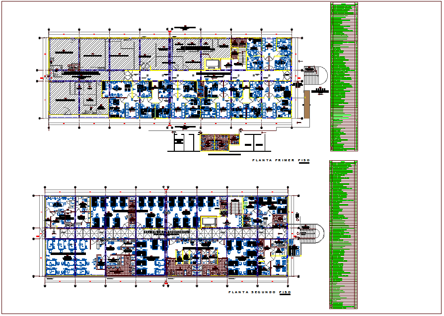 First and second floor plan view with area view legend for hospital dwg file with plan view with view