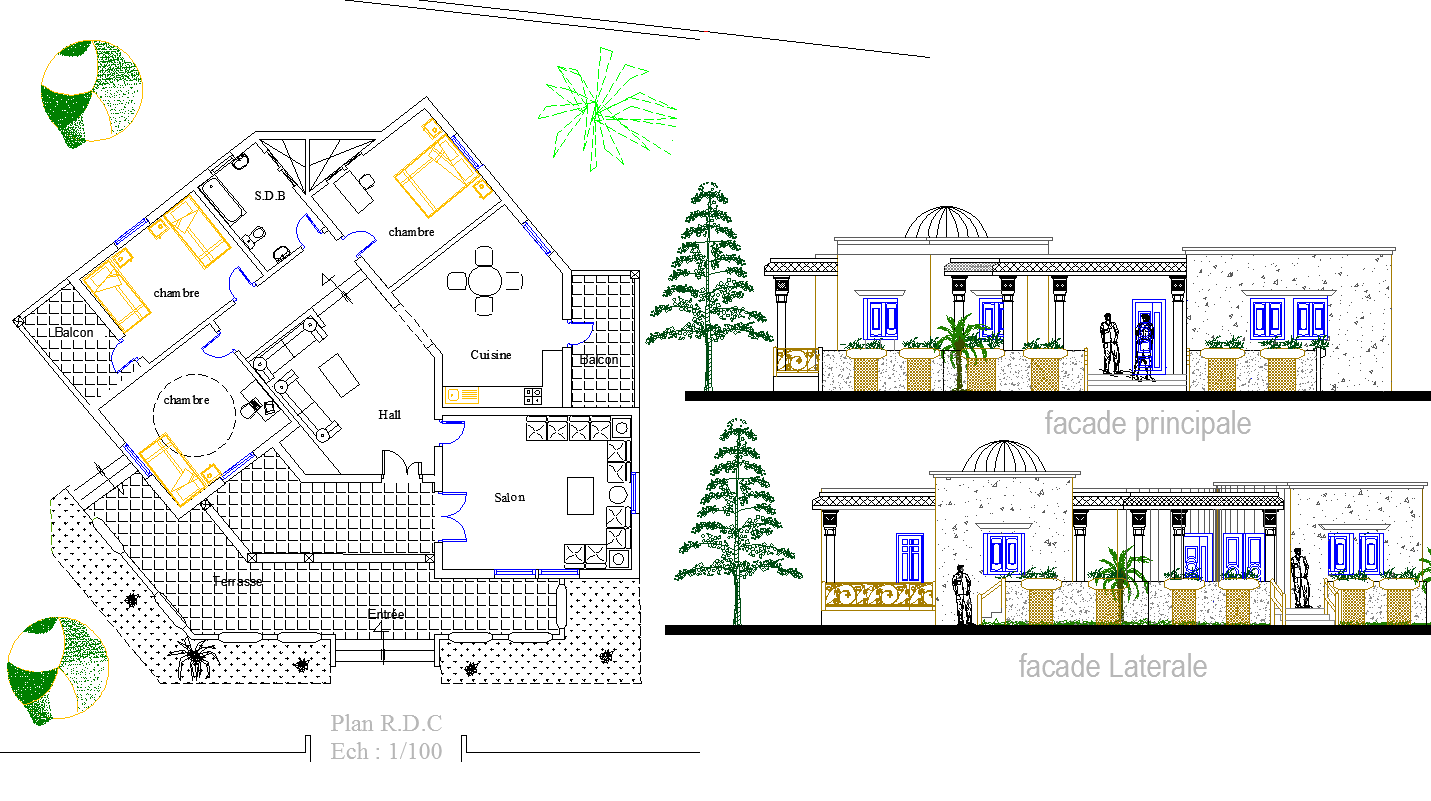 Single Level Residence plan dwg file. the architecture layout plan with furniture detailing, and elevation design of a Single story Residence project.