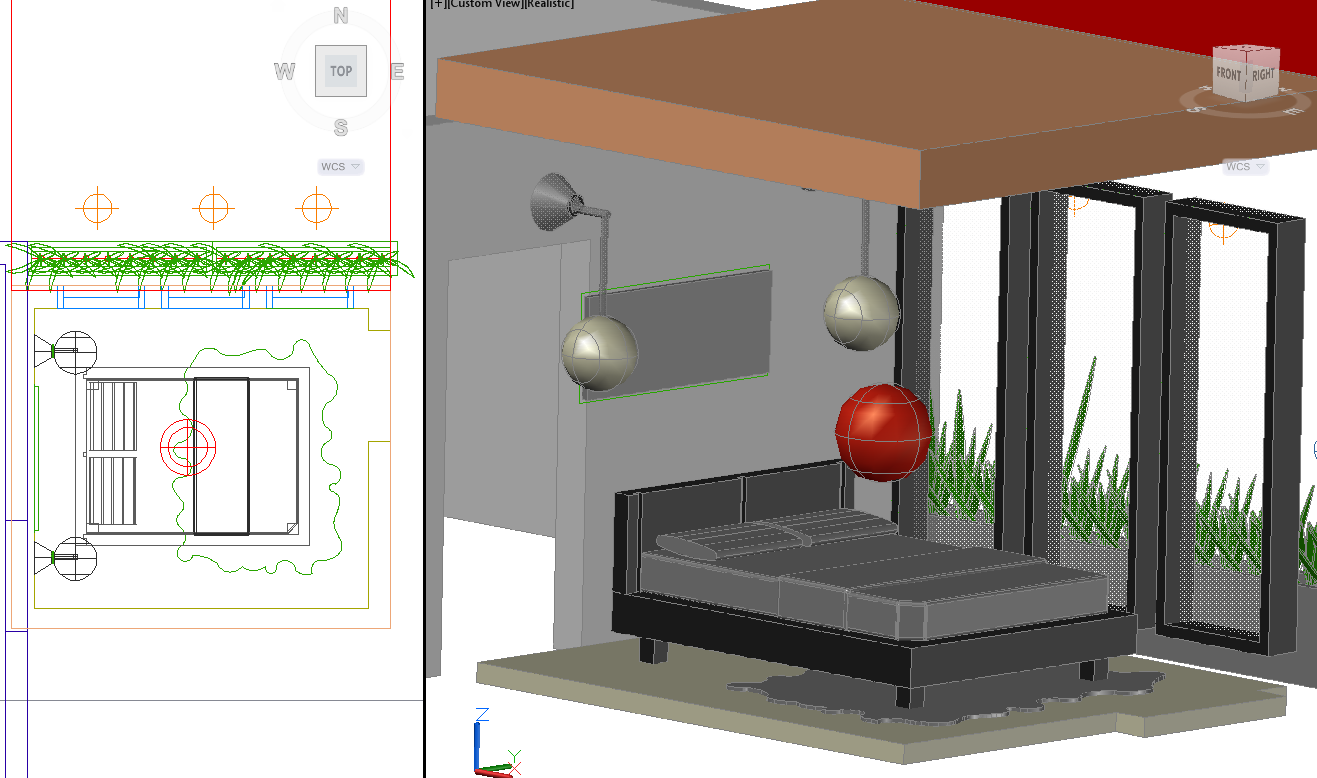 This detailed 3D bedroom CAD drawing showcases a modern and realistic interior layout, complete with furniture arrangements, lighting fixtures, and natural design elements. The DWG file provides both 2D and 3D visualizations, helping architects, interior designers, and CAD professionals plan and execute bedroom interiors with precision. Every element—from the bed and lamps to windows and ceiling design—is modeled to scale for a realistic representation that enhances presentation quality and client visualization.