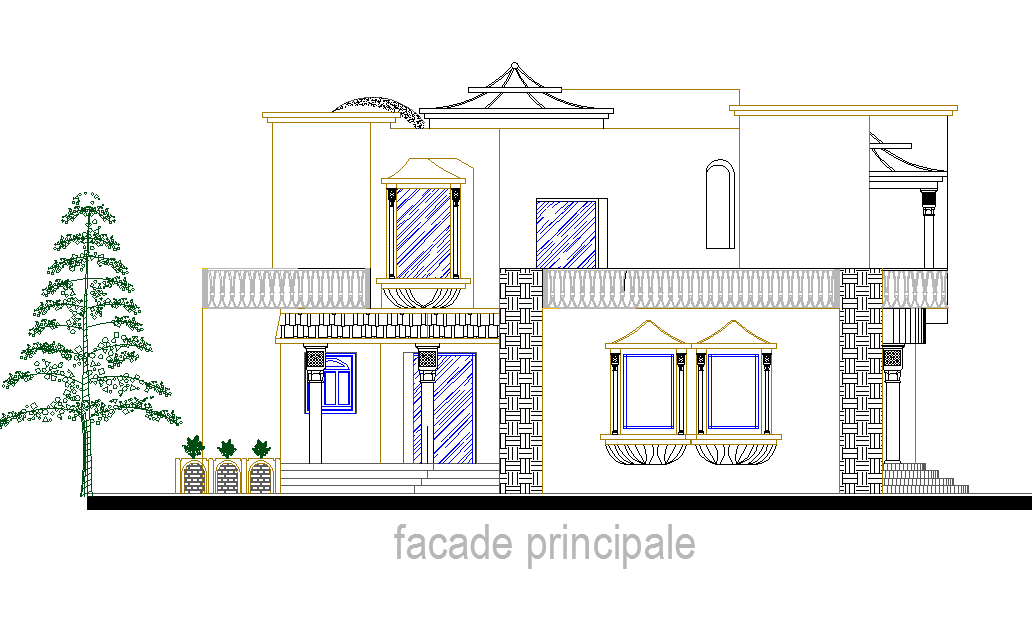 Modern Elevation design of House project dwg file. find here the architecture elevation design of residence house in autocad format.