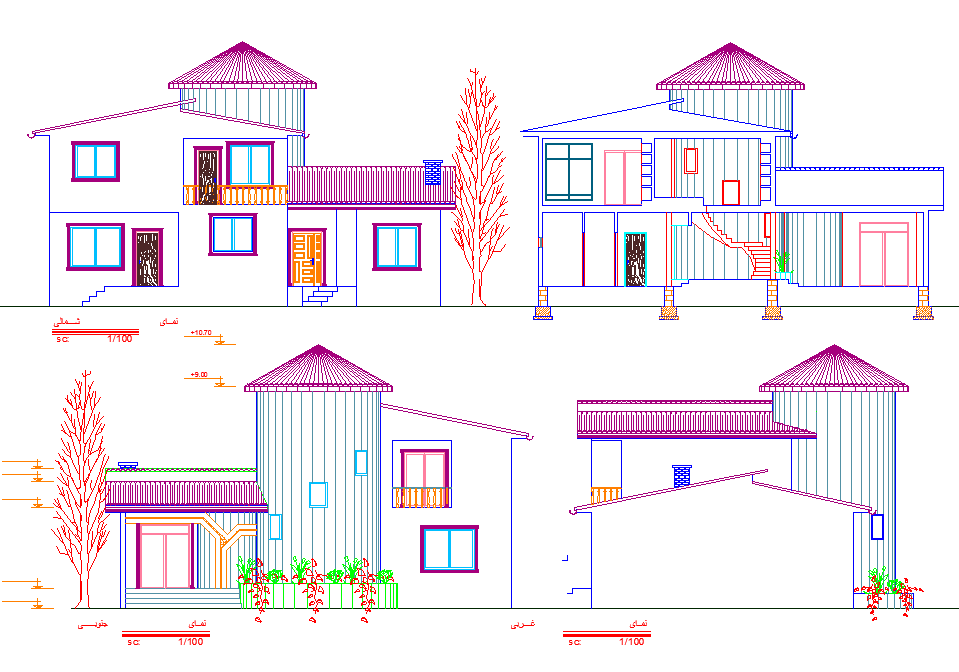 Residence Elevation Design of Residence project dwg file. find here modern elevation design with dimension detail and much more detailing in autocad format.